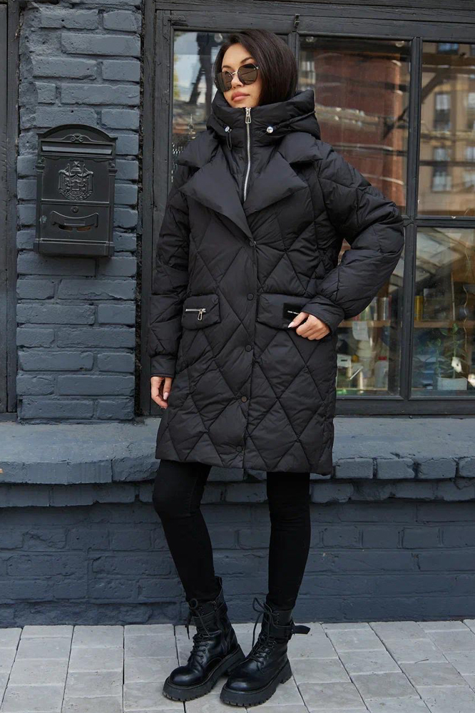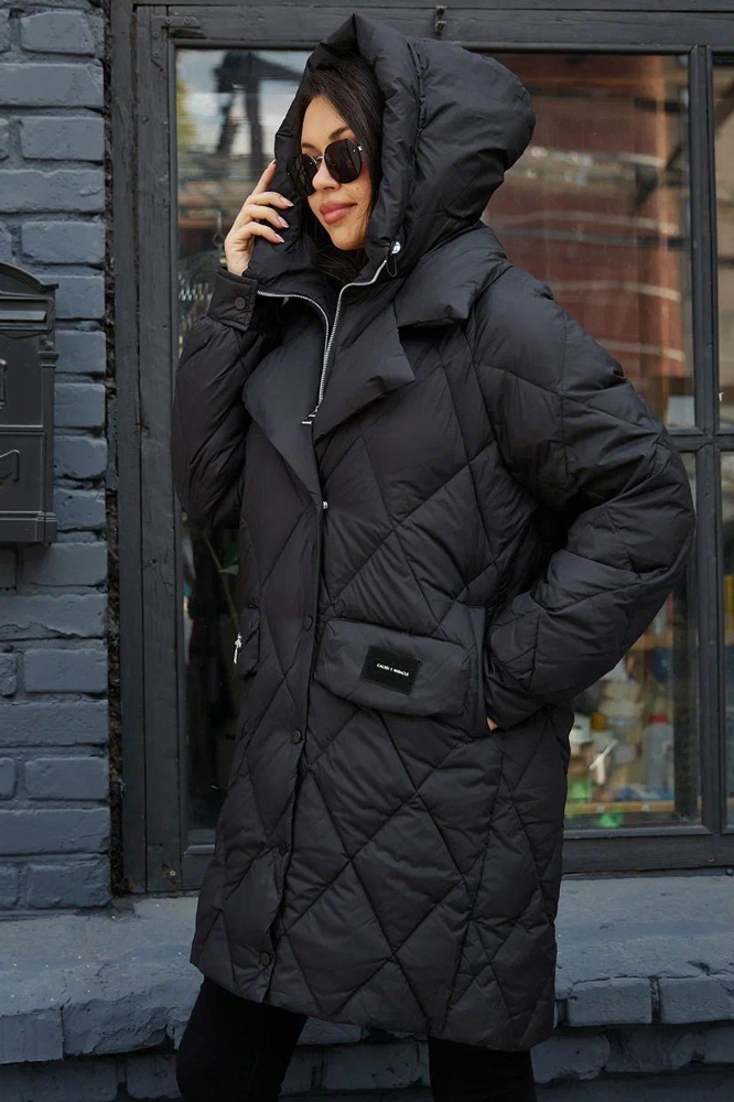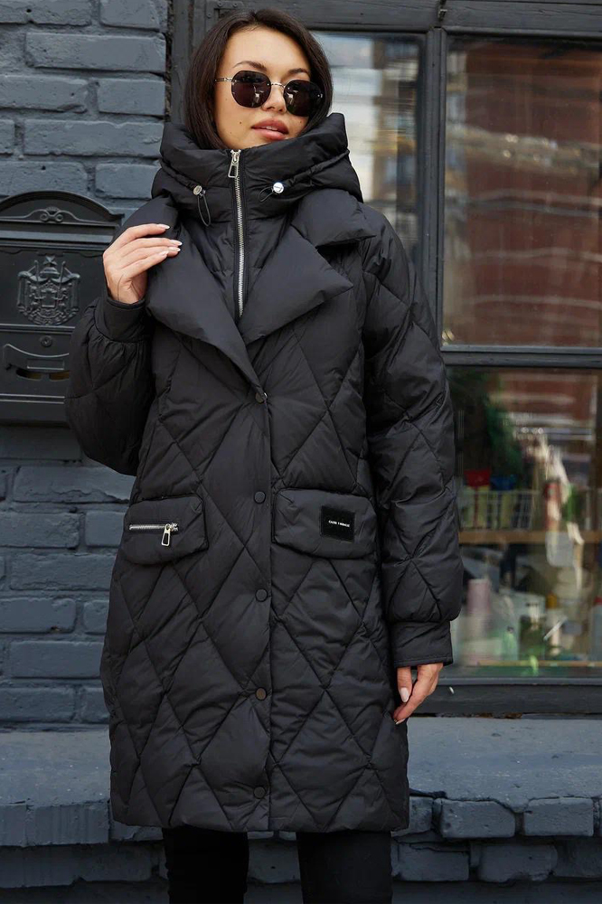 Пуховое пальто черного цвета с магнитными кнопками купить в Москве