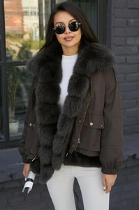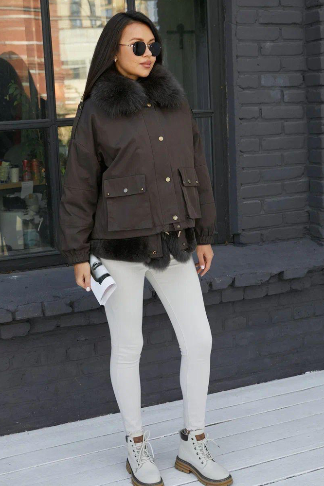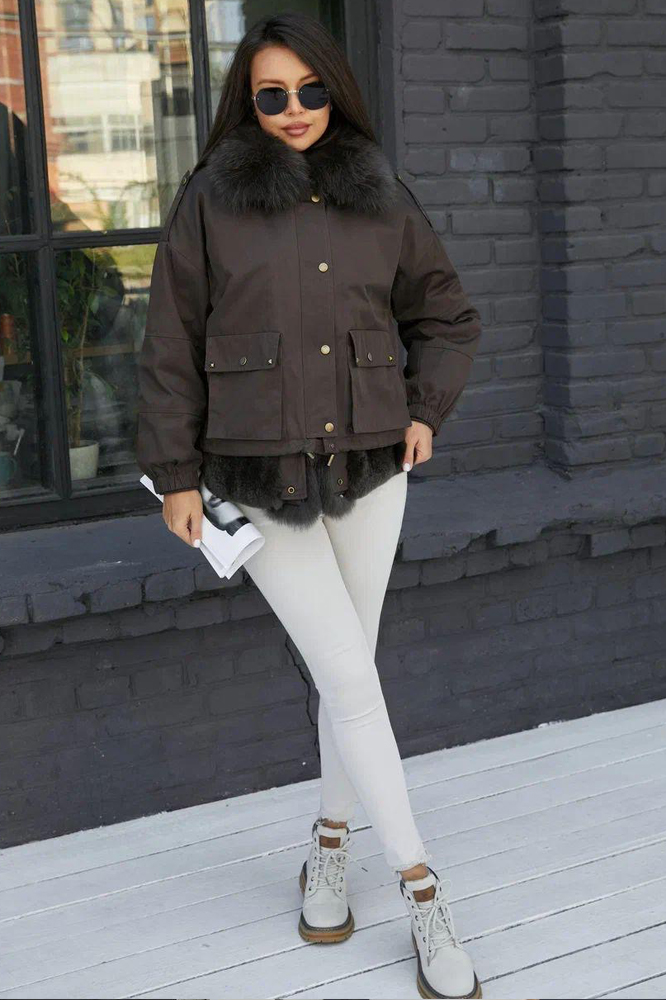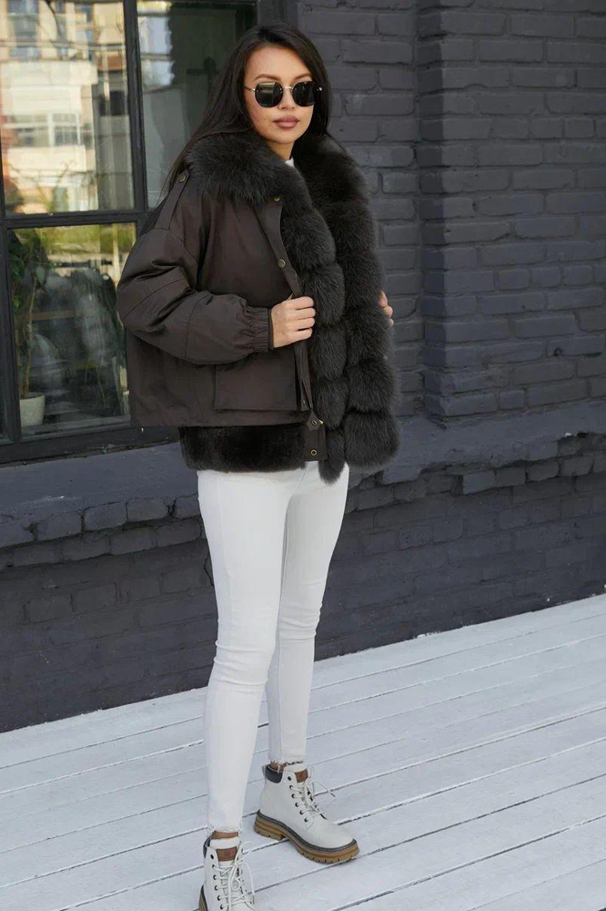 Короткая куртка оверсайз с кроликом и песцом купить в Москве