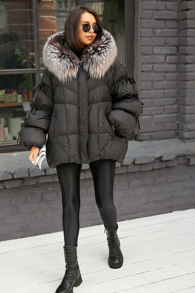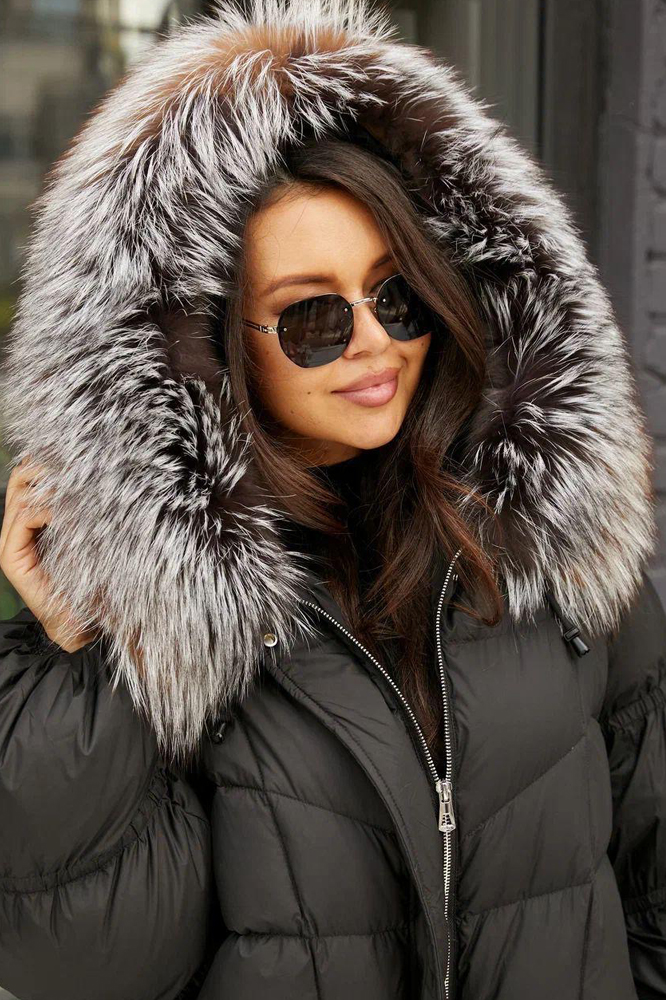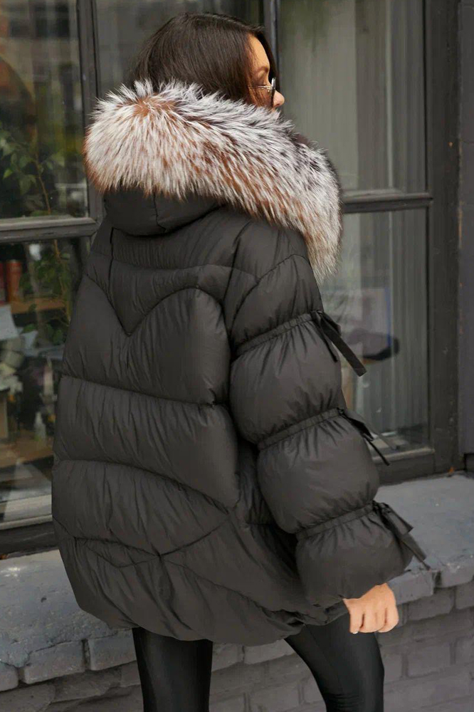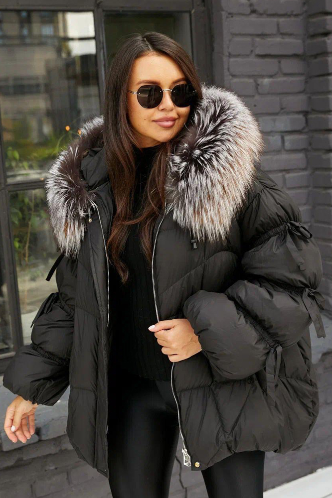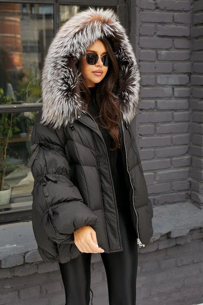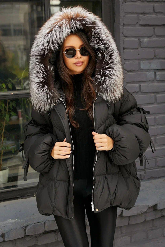 Тренд зимнего сезона 2025 года - оверсайз куртка с лентами и большим черным воротником. Модель садится на все типы женской фигуры, благодаря оверсайз крою легко сочетать с другими видами одежды. Внутри утеплена натуральным пухом и пером, по воротнику натуральная опушка длинношерстного енота - тонированная. Эксклюзивные и модные трендовые модели всегда доступны в нашем шоу руме по низким ценам.